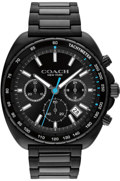 Coach Charter Qtz Fashion Chrono Black Tonneau Dial Men's Watch|Ionic Plated Black Steel Material|Black Color Band
