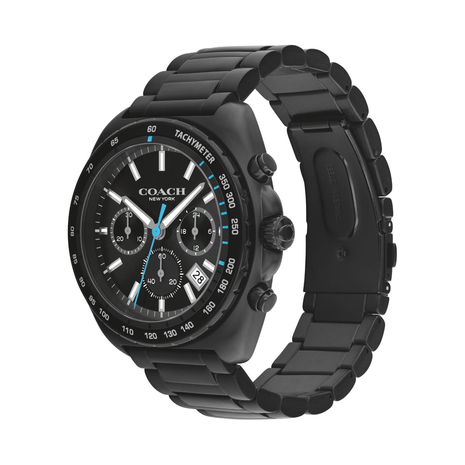 Amaze everyone around you by wearing this men watch from the charter collection by Coach. The black round dial is protected by a mineral glass. It features analog and a crown for time adjustment. The stainless steel strap comes in a black hue that further elevates the look of the timekeeper.