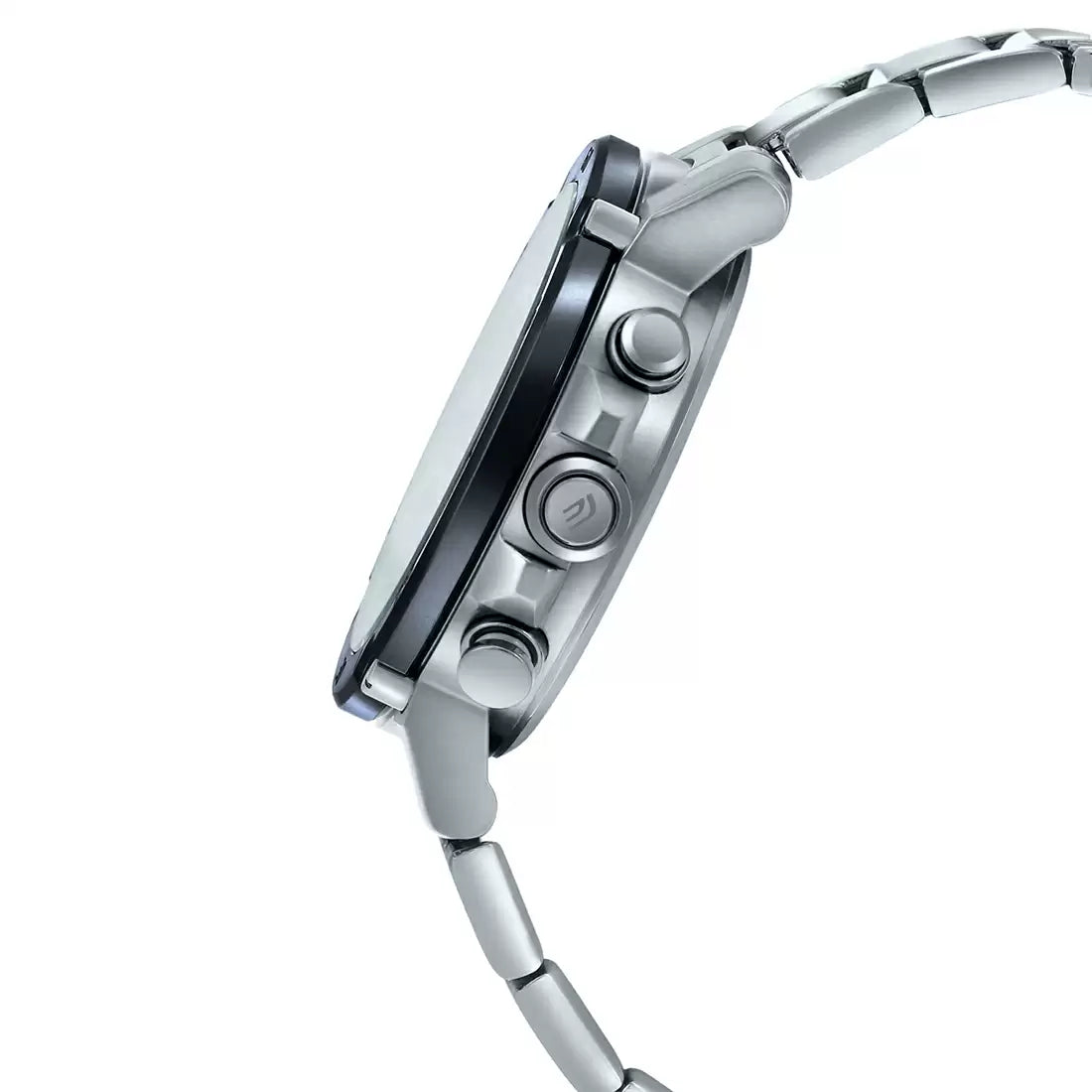 Case / bezel material: Stainless steel One-touch 3-fold Clasp Stainless Steel Band Mineral Glass Black ion plated case 100-meter water resistance Double LED light LED light for the face (Auto LED light, Super illuminator, selectable illumination duration (1.5 seconds or 3 seconds), afterglow) LED backlight for the digital display (Auto LED light, Super illuminator, selectable illumination duration (1.5 seconds or 3 seconds), afterglow) Mobile link (Wireless linking using Bluetooth) Hand shift feature (Hands move out of the way to provide an unobstructed view of digital display contents) Flight mode World time 38 time zones (38 cities + coordinated universal time), daylight saving on/off, auto summer time (DST) switching, Home city/World time city swapping 1/1000-second stopwatch Measuring capacity: 00'00000~59'59999 (for the first 60 minutes) 1:00'000~23:59'599 (after 60 minutes) Measuring unit: 1/1000 second (for the first 60 minutes) 1/10 second (after 60 minutes) Measuring modes: Elapsed time, lap time Countdown timer Measuring unit: 1 second Countdown range: 24 hours Countdown start time setting range: 1 second to 24 hours (1-second increments, 1-minute increments and 1-hour increments) 5 daily alarms Hourly time signal Full auto-calendar (to year 2099) 12/24-hour format Button operation tone on/off Schedule beeper on/off Date/month display swapping Day display (days of the week selectable in six languages) Regular timekeeping Analog: 2 hands (hour, minute (hand moves every 20seconds)), 1 dial (linked to each mode) Digital: Hour, minute, second, pm, month, date, day Accuracy: ?ñ15 seconds per month (with no mobile link function) Approx. battery life: 2 years on CR2016