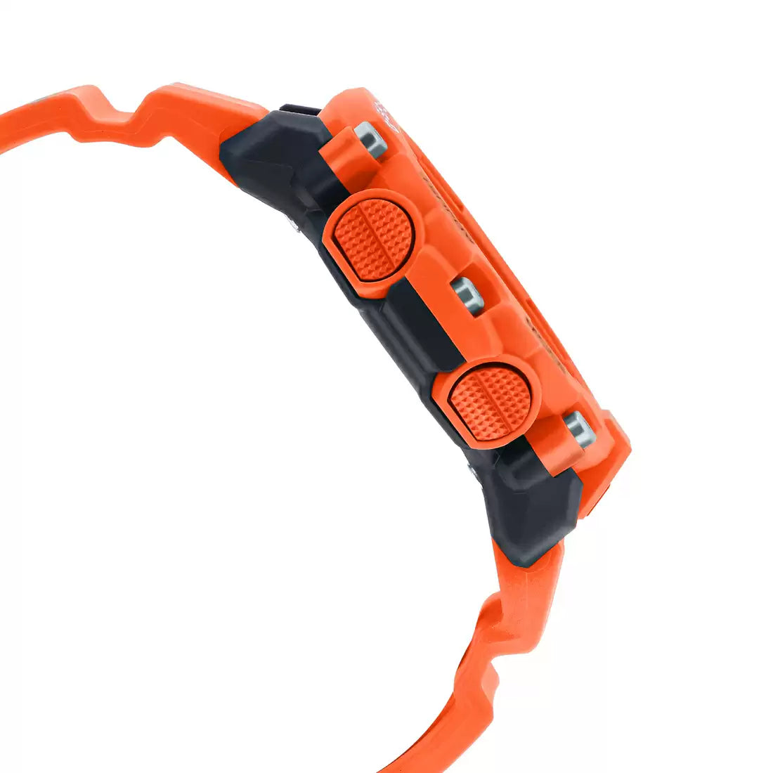 Answer the call to every adventure with this tough watch built with a carbon core guard structure ƒ?? an indispensable tool for your kit of outdoor gear.The three-tier construction seamlessly integrates bezel, case back and buttons to slim the case down to a mere 12.4mm. Larger shock-resistant side buttons eliminate the need for button guards, for a more compact timepiece. All this, with zero compromise on ease of use ƒ?? in fact, it's even easier.The round bezel with six screw accents projects the rugged toughness demanded on adventures great and small. The inset dial indicator, inspired by an automotive brake disc, is enclosed in a semi-circular ring, both of which are treated in a vapor deposition finish for the metallic look of serious outdoor gear.Crafted separately, the parts and dial are then assembled to add dynamic dimensionality to the watch face. The digital display runs diagonally between the 4 and 6 o'clock positions for a final touch of outright boldness