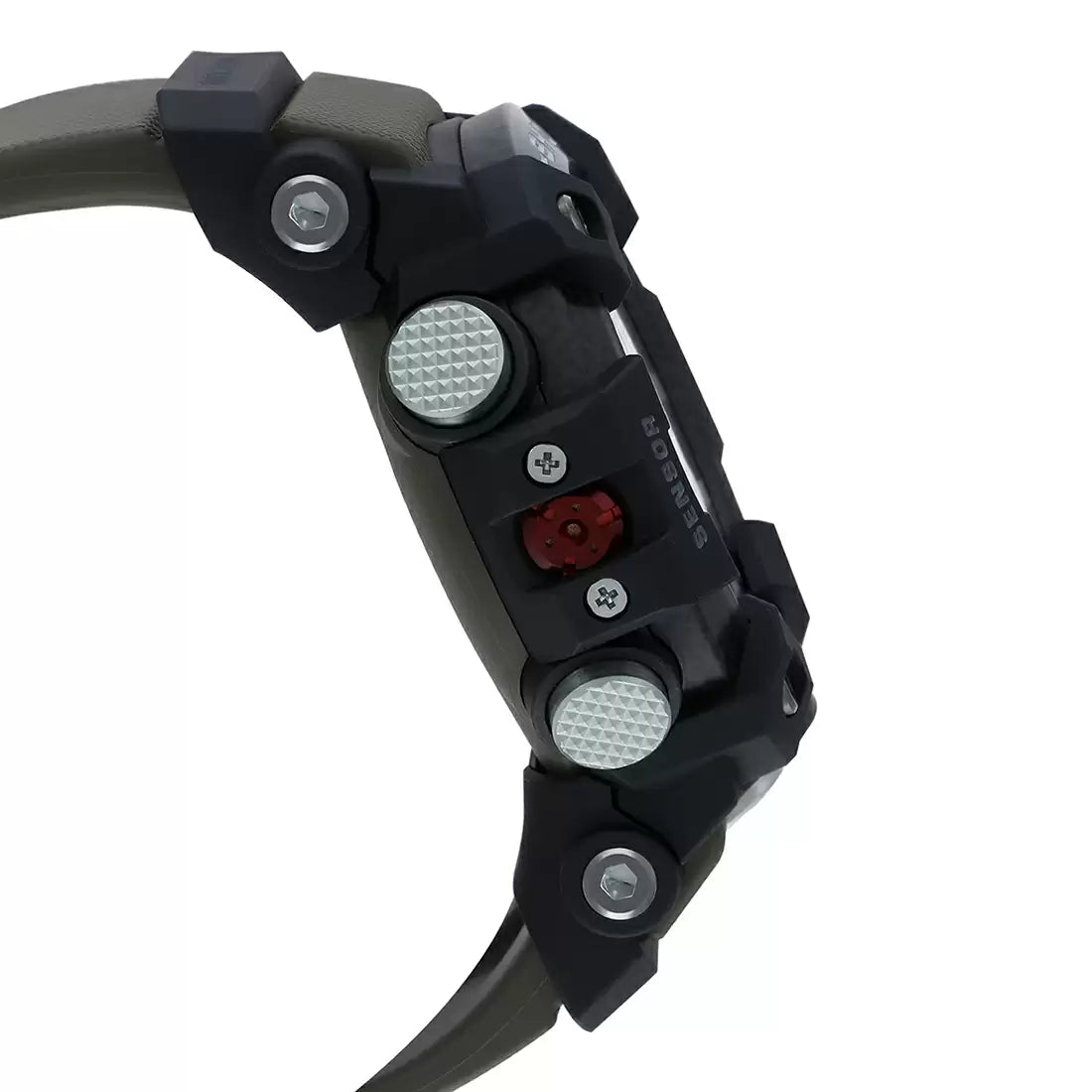 From the MASTER OF G Series MUDMASTER, the watch that is designed and engineered to withstand rough land environments, come carbon resin models that incorporate a new type of structure. The case is made of high-rigidity carbon material to protect against damage and deformation due to impact and other rough treatment, while metal button pipes ensure a tighter seal against the external environment. A filter further protects against the invasion of mud, for the high level of dust and mud resistance required when in severe environments. In addition, the dual back cover consists of a stainless steel panel back and an outer cover made of shock resistant fine resin embedded with glass fibers. The bezel is formed of three layers of fine resin with carbon fiber inserts. The top layer is transparent, resulting in a bezel that shows the embedded carbon material. Quad Sensor capabilities use compact sensors that make it possible to pack compass, altitude/barometer, and temperature measurements, along with an accelerometer that keeps track of your step count, into a compact configuration. This provides the outdoor adventurer with the means to keep track of the surrounding environment while on the go. A special G-SHOCK app, which simplifies configuration of watch settings, also includes a new Mission Function. The app automatically records altitude data measured by the watch and route information acquired by a smartphone's GPS. Manually obtained altitude points can be plotted on your route. Altitude measurement and the step count are used to perform consumed calorie calculations that take up and down grades into consideration, and to record the results in an activity log. A watch button operation can be used to record your current location with the app. Then the second hand indicates the bearing to the recorded location, while the digital display shows the distance to the location. These new models also support Mode Switching Customization. You can use the app to enable or disable modes individually so only enabled modes appear. You can even specify the sequence to be used when displaying the modes. Mud resist structure (dust-resistant, mud-resistant) Quad sensor (Thermometer, Altimeter/Barometer, Digital Compass, Step Counter) Super Illuminator auto double LED light for face and digital display illumination.